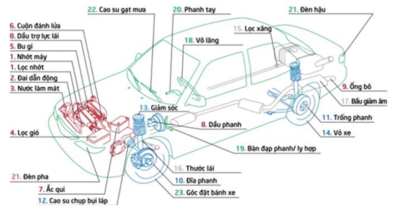 Kiểm tra các bộ phận quan trọng: Trong mỗi lần bảo dưỡng, ngoài các hạng mục cơ bản như thay dầu, lọc gió, lọc dầu, bạn cần yêu cầu kiểm tra thêm các bộ phận quan trọng khác như hệ thống phanh, lốp xe, hệ thống làm mát, ắc quy, hệ thống lái và các dây curoa.